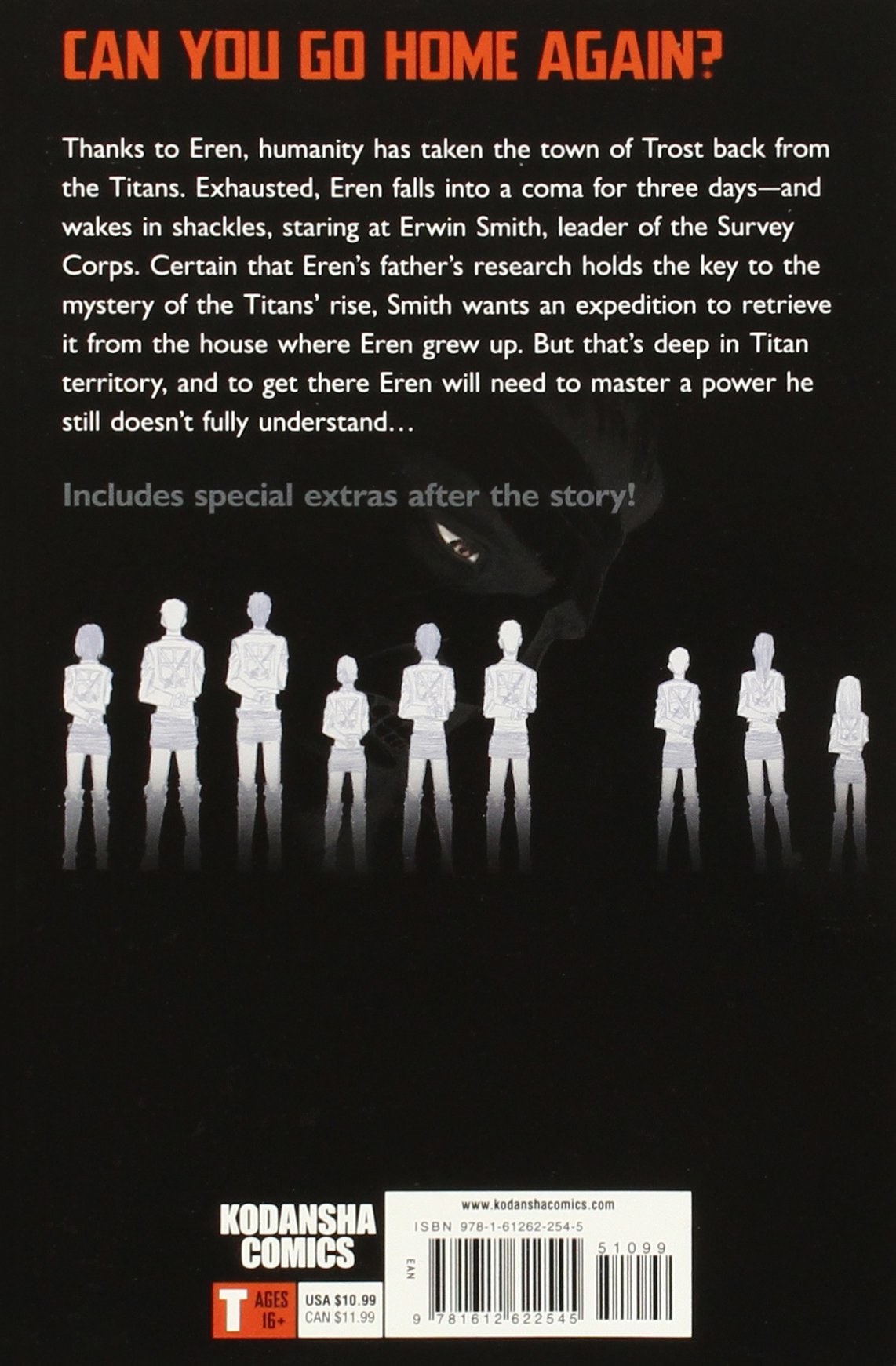 Dankzij Eren heeft de mensheid de stad Trost teruggenomen van de Titanen. Uitgeput valt Eren drie dagen in coma - en wordt wakker geketend, starend naar Erwin Smith, leider van het Survey Corps. Ervan overtuigd dat het onderzoek van Erens vader de sleutel is tot het mysterie van de opkomst van de Titans, wil Smith een expeditie om het terug te halen uit het huis waar Eren opgroeide. Maar dat is diep in Titan-territorium, en om daar te komen zal Eren een kracht moeten beheersen die hij nog steeds niet helemaal begrijpt...
